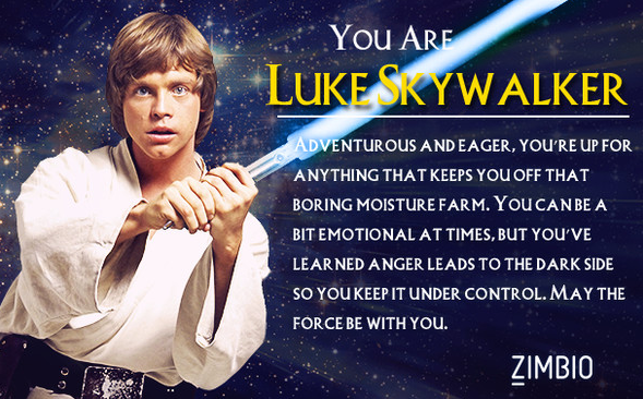 Check out this ‘Star Wars’ personality quiz. I ended up being Luke Skywalker: Quiz yourself and see who you are:… Read more ‘Star Wars’ personality quiz